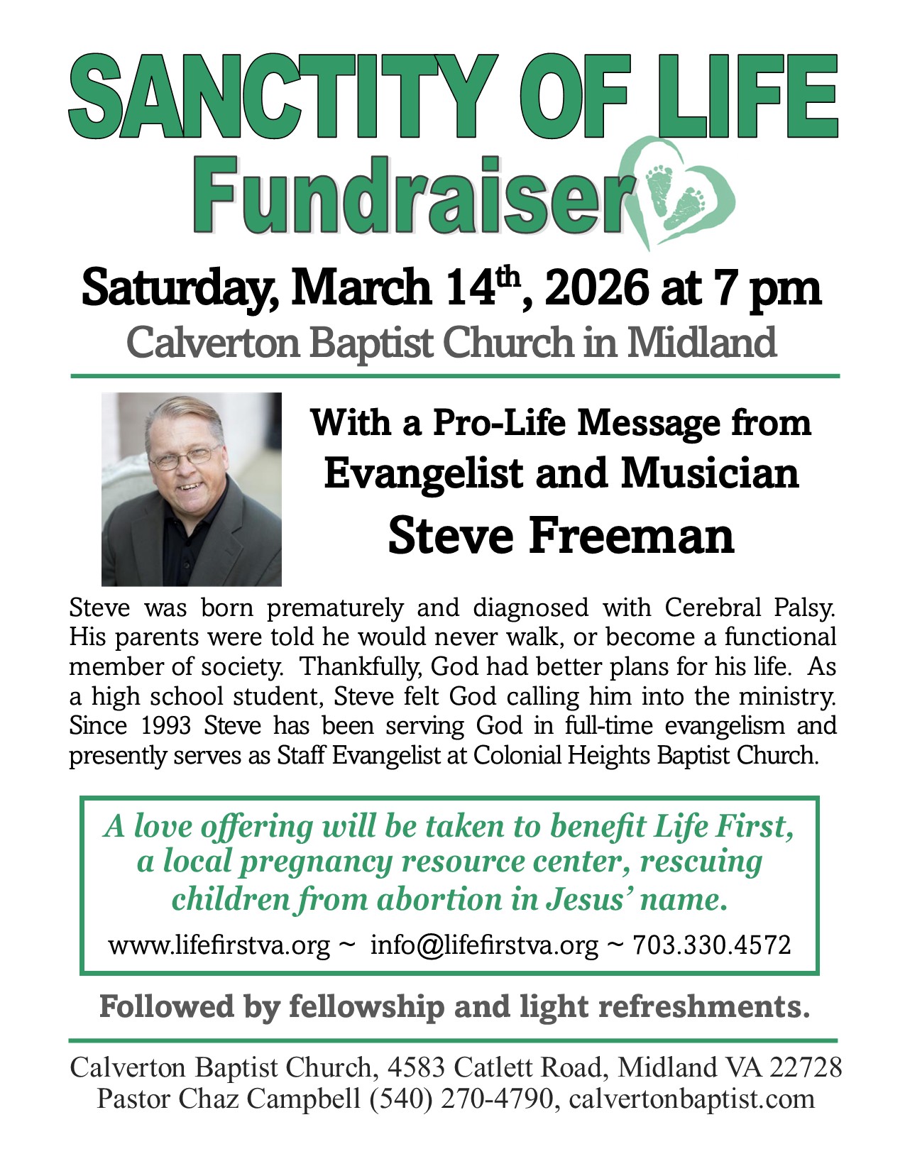 Sanctity of Human Life Fundraiser - Saturday, March 14th, 2026 at 7 pm
